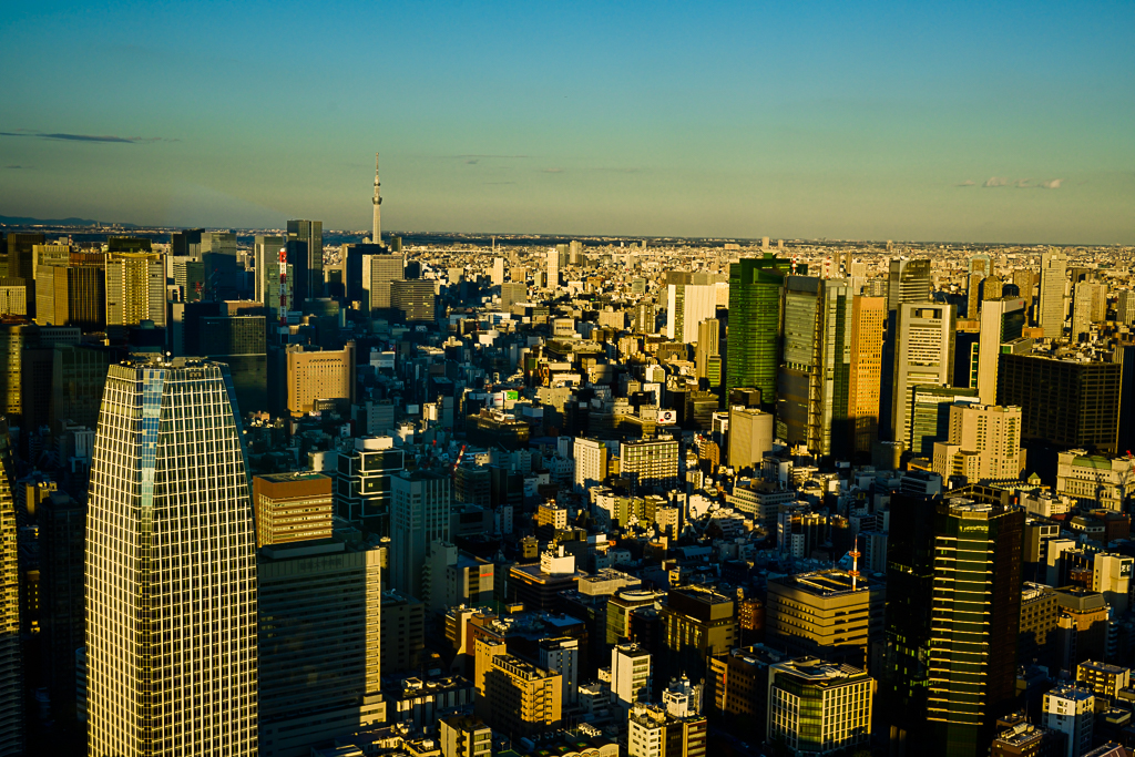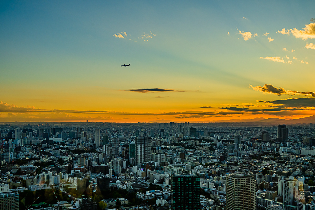 日暮の東京上空・東京タワーより